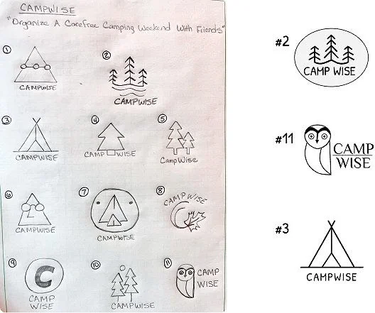 Receiving feedback from fellow designers in design crits, I narrowed down the top 3 contenders for the CampWise logo.