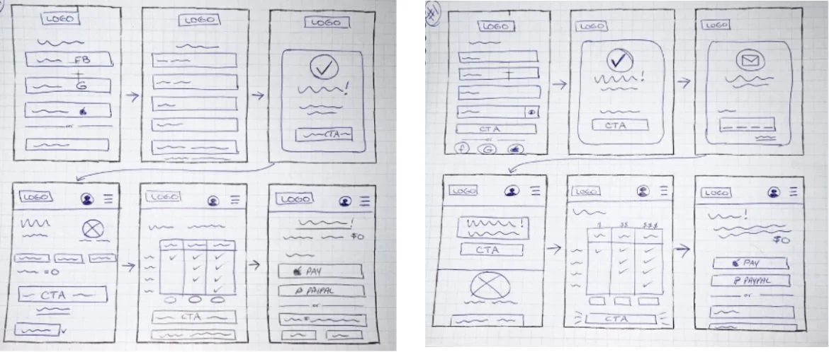 Task flows and User flows were devised to validate user interactions and test the user flows for the MVP. I presented my flows in design critiques - this was pivotal to gain fresh insights beyond the happy paths I had already envisioned. Because of feedback I received from other designers, I made tweaks to the flows that I would later use in my testing.