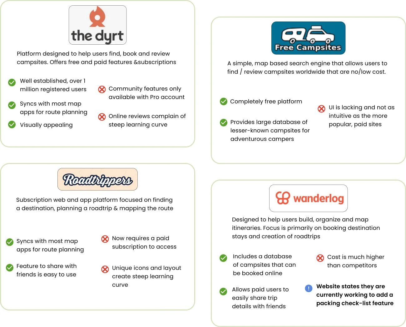 I wanted to learn as much as possible about the camping industry so I began compiling information from some basic internet searches. Performing this secondary research gave me a much better understanding of the camping industry and great insights into emerging trends and expectations. Not surprisingly, the industry underwent exponential expansion during the pandemic, thereby fostering a more diverse range of participants in the activity. With more people now interested in camping, it seems likely there exists potential for new platforms.